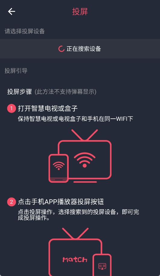5、开启投屏:打开投屏功能后,按照提示逐步操作,就能搜索并连接投屏设备,体验大屏幕带来的高清画质。