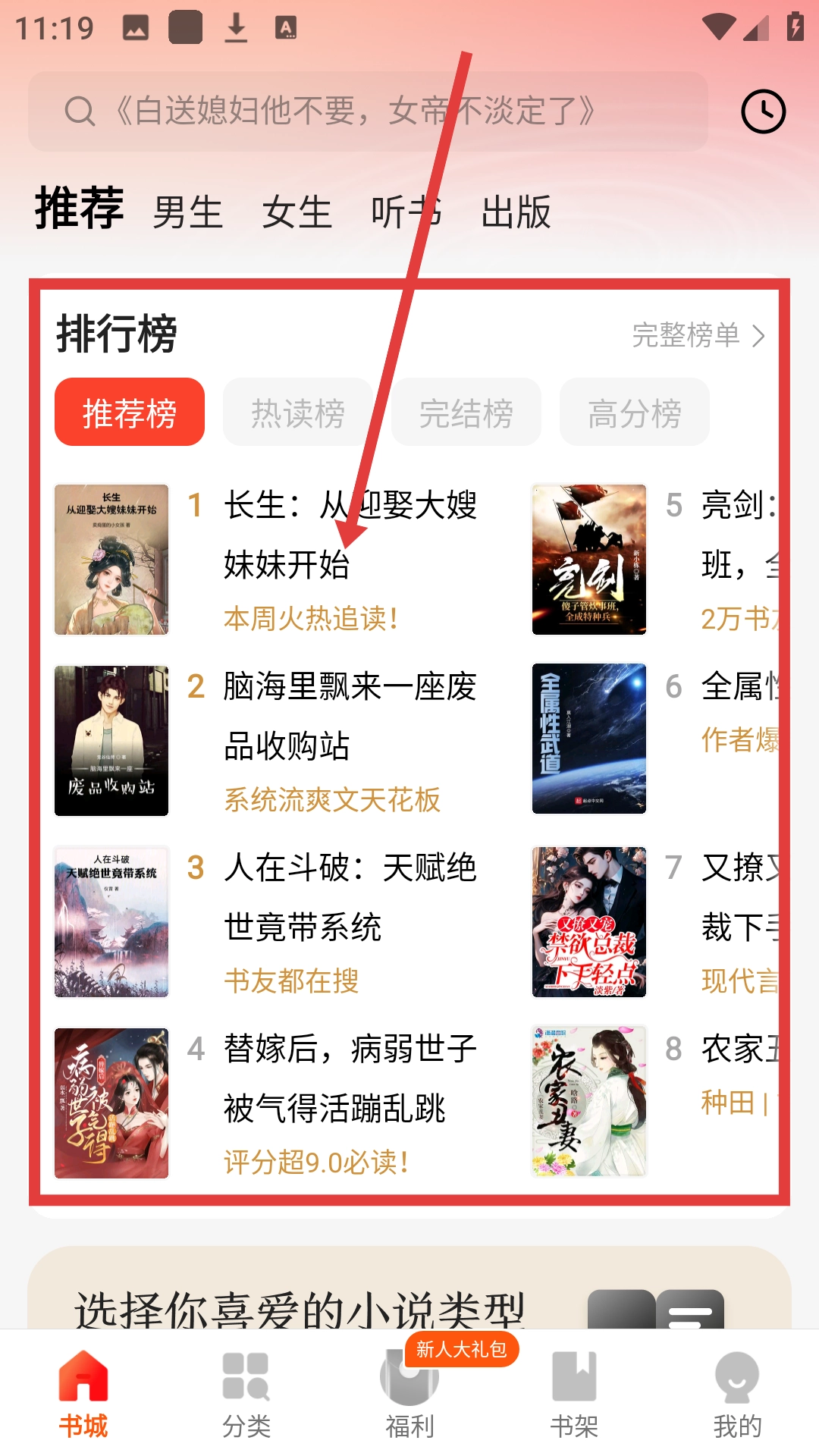 在书城排行榜里挑选心仪的小说,点击就能进入小说详情页,开启你的阅读之旅啦。