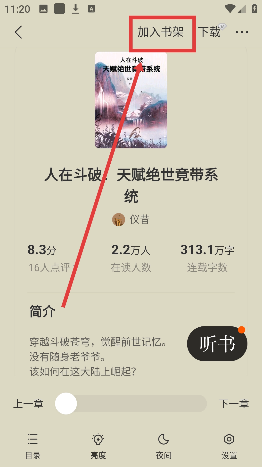 在小说详情页面点击【加入书架】按钮,就能把这本小说添加到书架中,方便之后随时阅读。
