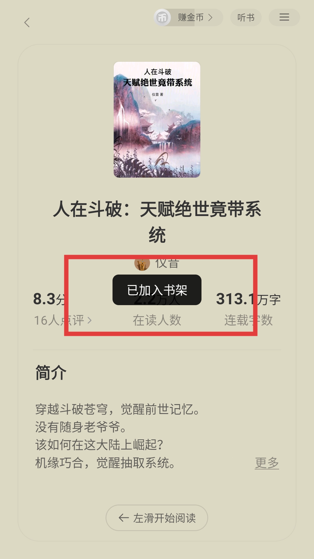 3、点击之后会显示“已加入书架”的提示,小说就成功收藏到书架了。