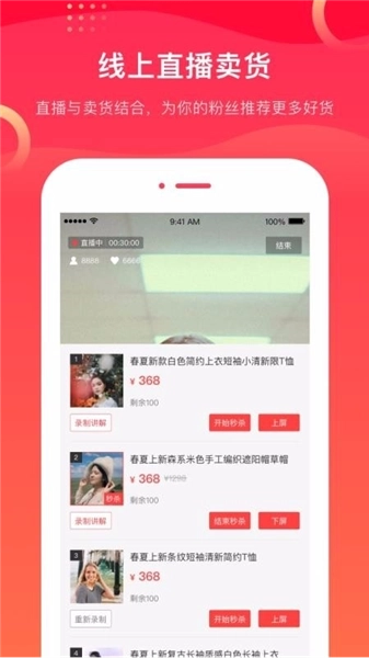 2、便捷的直播方式,不需要其他设备即可用手机开直播并带货;