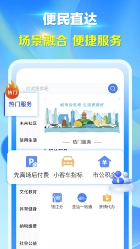 1、本地生活:垃圾分类查询、市民卡、水务、燃气、华数等;