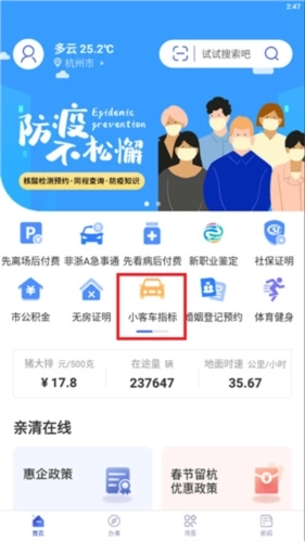 具体操作:在“城市大脑”上直接在首页点击“小客车指标”
