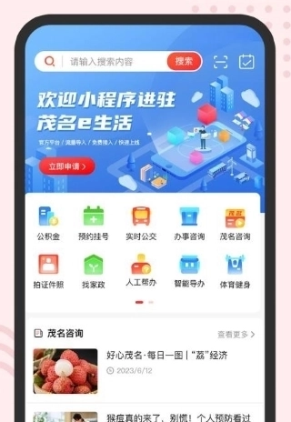 茂名e生活是由茂名市政府主导建设的智慧城市生活服务综合平台,为市民提供一站式生活便民服务,覆盖政务、公共服务与生活服务领域,致力于提升市民生活品质。用户通过该平台,可实时查询公交动态、浏览本地资讯,还能办理公积金查询、政务咨询、家政服务预约、体育健身等多种便民事项。