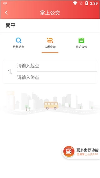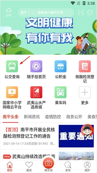 1、在本站安装掌上南平并打开,点击公交查询;