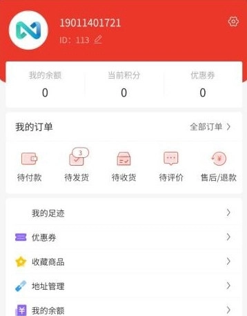 4、在我的页面,就能查看余额、积分、优惠券和我的订单等信息