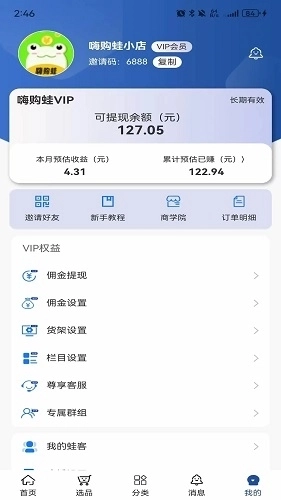 4、优质服务:嗨购蛙商家版配备24小时在线客服团队,随时为商家提供及时的技术支持与问题解决方案。