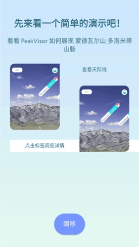 可以直接在掌心浏览高精度的3D山岳全景画面。既能够实时识别巍峨的山峰,也可以在拍摄照片后,为山峰添加标签并分享给好友。