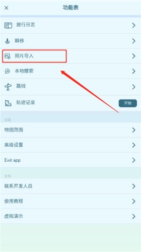 2、在“功能表”页面选择“照片导入”选项。