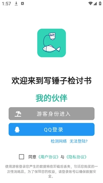 1、打开锤子检讨书时会直接弹出用户协议书,只需等待几秒钟,待按钮颜色变化后点击“我同意此协议”即可。