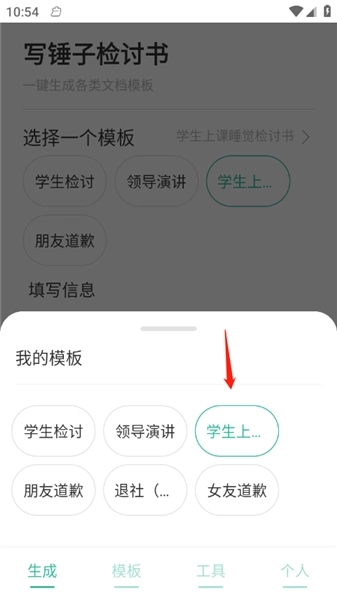 它提供了多种检讨书模板,你可以根据自己需要撰写的检讨书类型,挑选合适的模板来快速生成一篇检讨书。