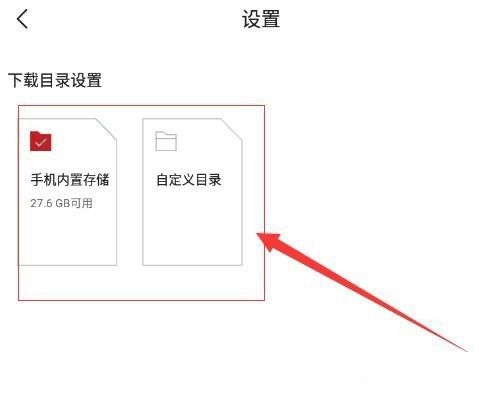 5、然后用户点击进入目录设置界面,有两个选项,一个是手机存储,一个是自定义目录