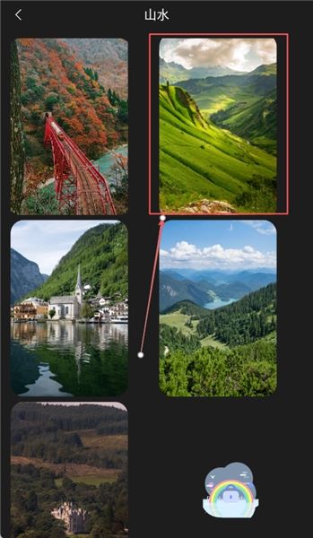 2、进入山水分类页面详细浏览壁纸内容,选择自己喜欢的山水壁纸准备进行具体设置。