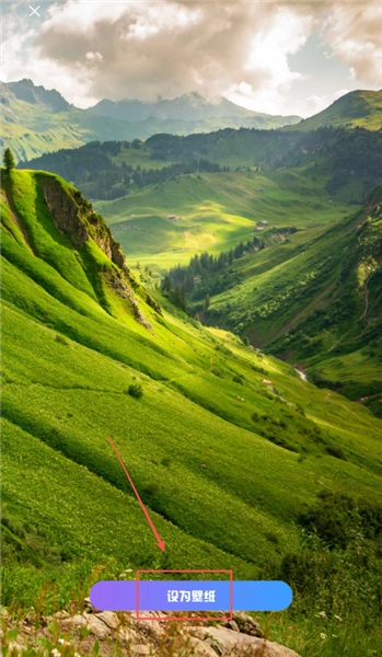 3、点击选中的山水壁纸查看完整详情,确认效果后点击设为壁纸功能按钮开始设置。