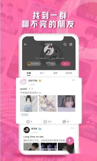 2、这里有宅系少年、软萌萝莉、资深腐女,还有腹黑攻、飒爽御姐、傲娇小可爱,以及绘画大触、cosplay爱好者——我们打造了一个贴心温暖又活泼的ACGN社区!来这儿求眼熟、找同好、磕CP,每天都能热热闹闹不孤单~