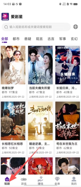 1、主页展示了丰富的短剧资源。