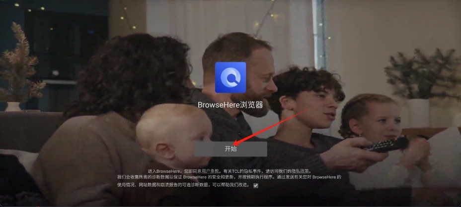 1.打开browsehereTV版,点击开始