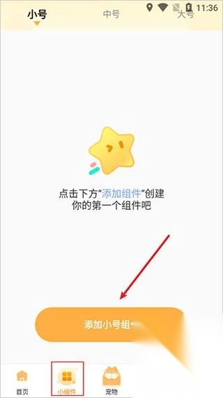 1、打开软件后,点击小组件,再点击添加小号组件。