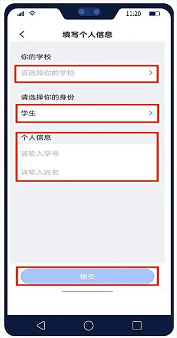 02已注册过UNIPUS账号的用户,可直接使用已有账号登录。未注册的用户完成验证后会自动创建新账号,首次登录时需填写个人信息:选择所在学校及学生身份,输入姓名与学号,点击【提交】按钮,即可完成个人信息录入。