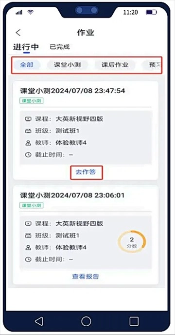 01点击【学习】,最上方【作业】中显示的是当前老师发布的作业。通过标签,可以对作业进行筛选,点击【去作答】进入作答页面。