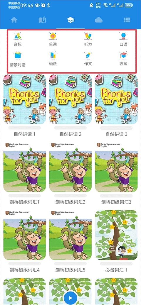 8、用户还能在此学习音标、单词、听力、口语、情景对话、语法、作文等各类知识,全方位助力提升英语水平。
