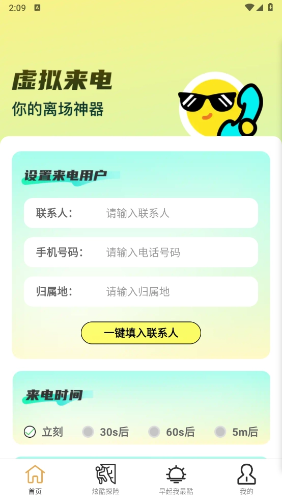 “来电我最酷”是一款模拟来电的趣味软件,专为社恐人群打造。当你想巧妙逃离社交场合时,它能帮你轻松化解尴尬——不仅可以自由设置来电时间、联系人信息,模拟效果还超级逼真,甚至能开启来电闪光功能,让“紧急来电”更具说服力,是社恐人士应对不必要社交的必备小工具。