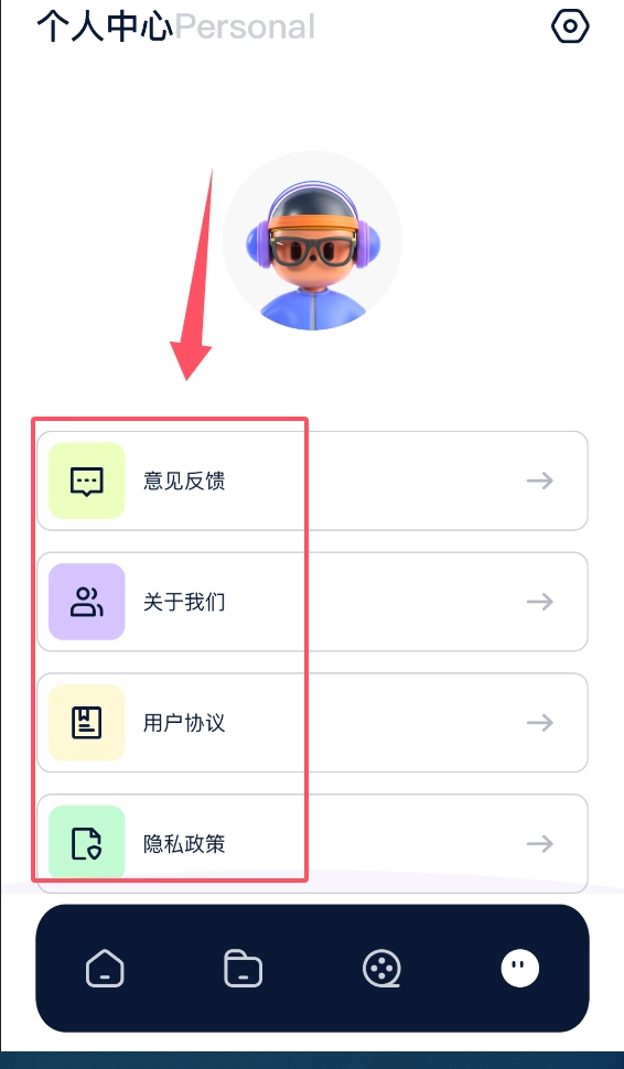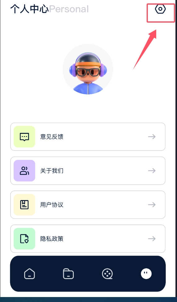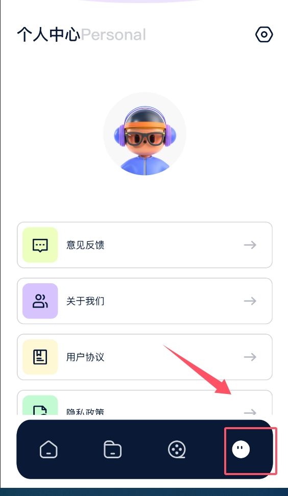1、点击底部的笑脸图标即可进入个人中心,页面顶部会显示用户名与VIP状态。带有耳机图案的头像支持点击更换,还能上传自定义的形象。