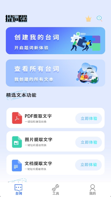 它为我们配备了专业的在线提词工具,能和短视频、直播软件无缝衔接,助力我们轻松记牢台词,巧妙化解忘词的窘境,让提词操作更显专业流畅。另外,我们还能根据自身需求自定义台词脚本,便捷地完成创建与查看台词的操作。